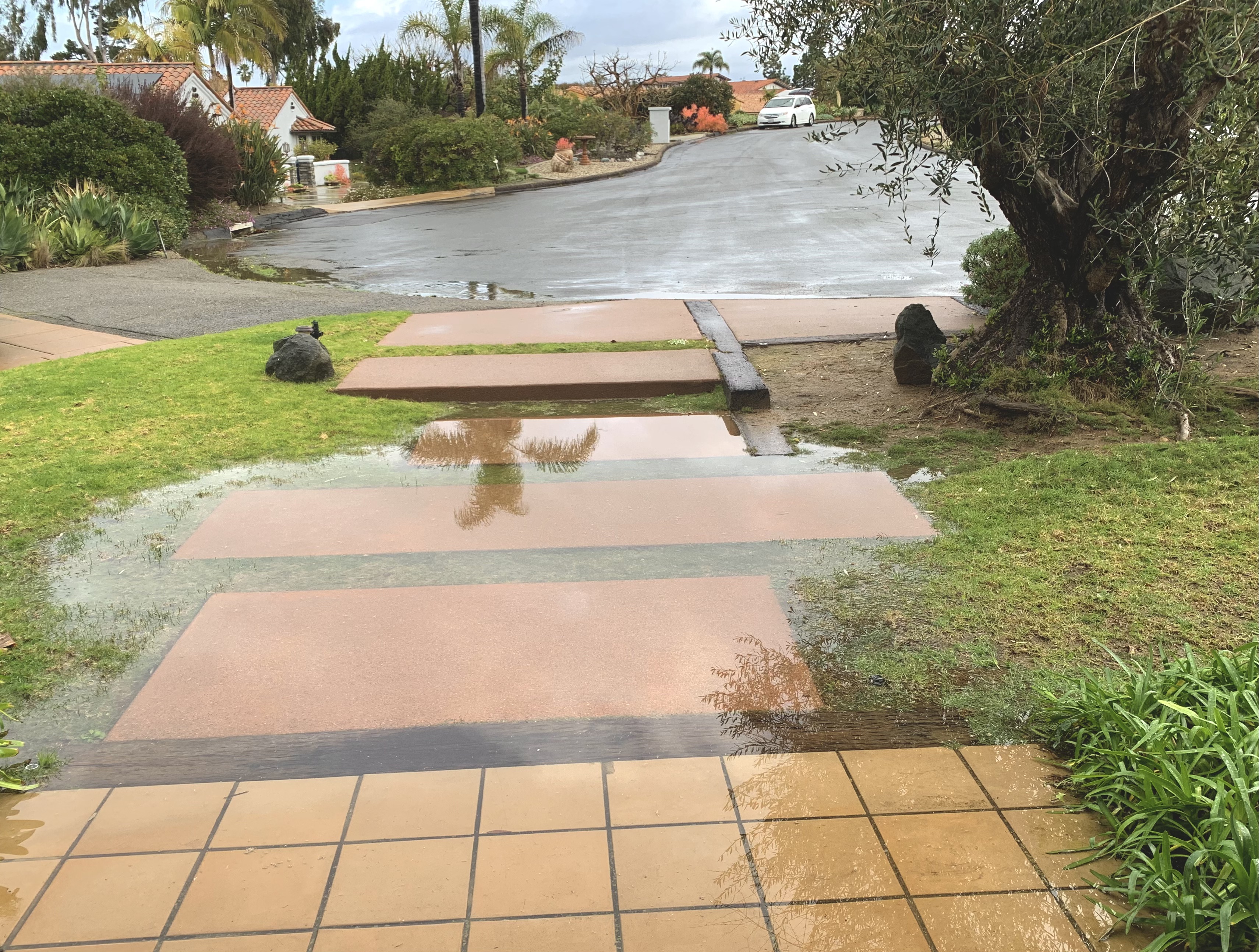 Sadie, meanwhile has been very patient about the fact that our walks have been typically much shorter all week. She has also been patient about not being allowed to dig in the dirt. More accurately, she wasn’t allowed to dig in the mud. There was no “dirt” around. It’s not idle digging. She hears and smells gophers and goes after them. Unsuccessfully. Every time. She’s dug for gophers more than the San Diego weather forecasters trusted Sunshine’s repeated false assurances that tomorrow the rain would end; indeed, even more often than Charlie Brown has over-trusted Lucy.