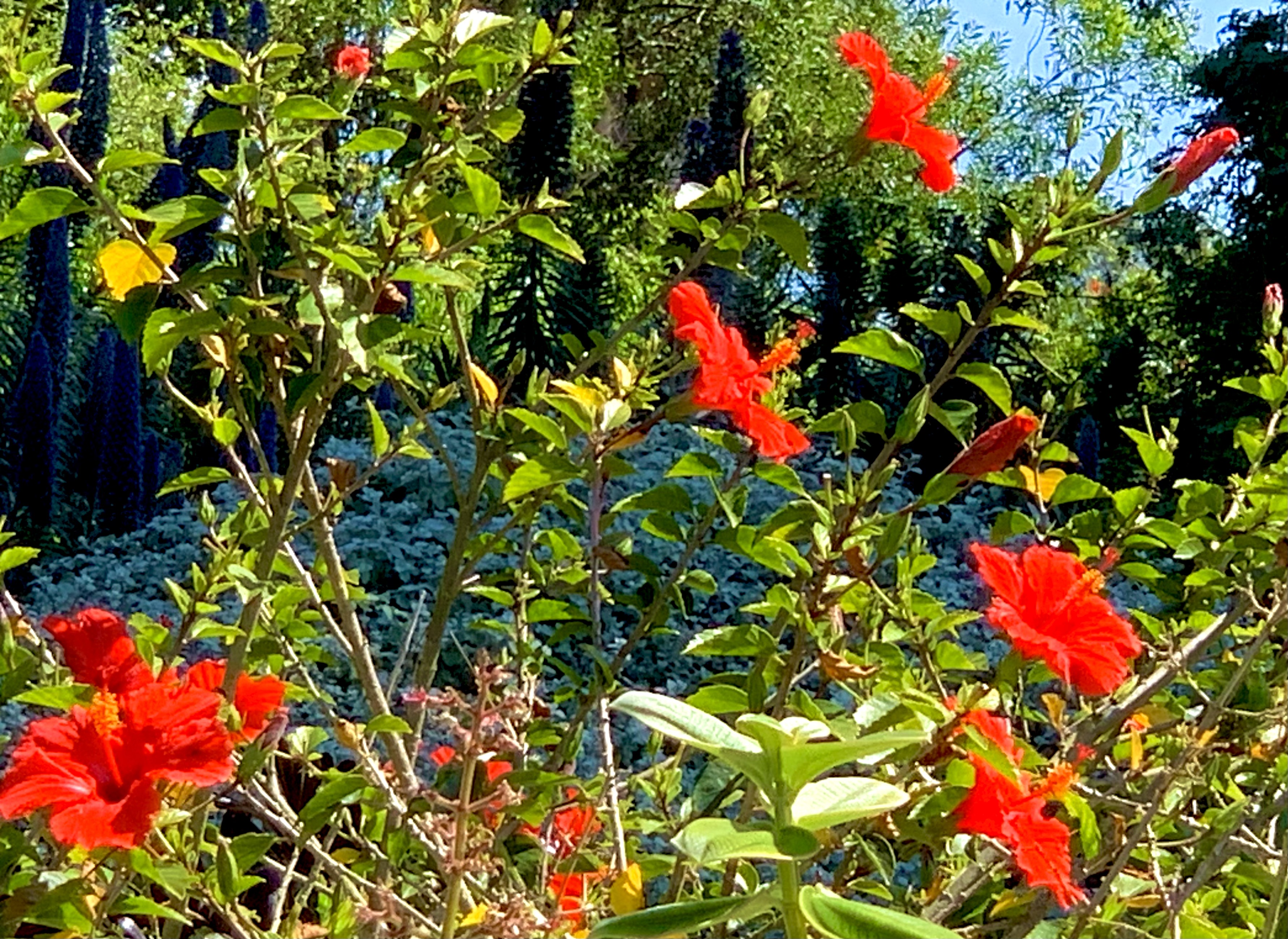 Trailing long red streamers