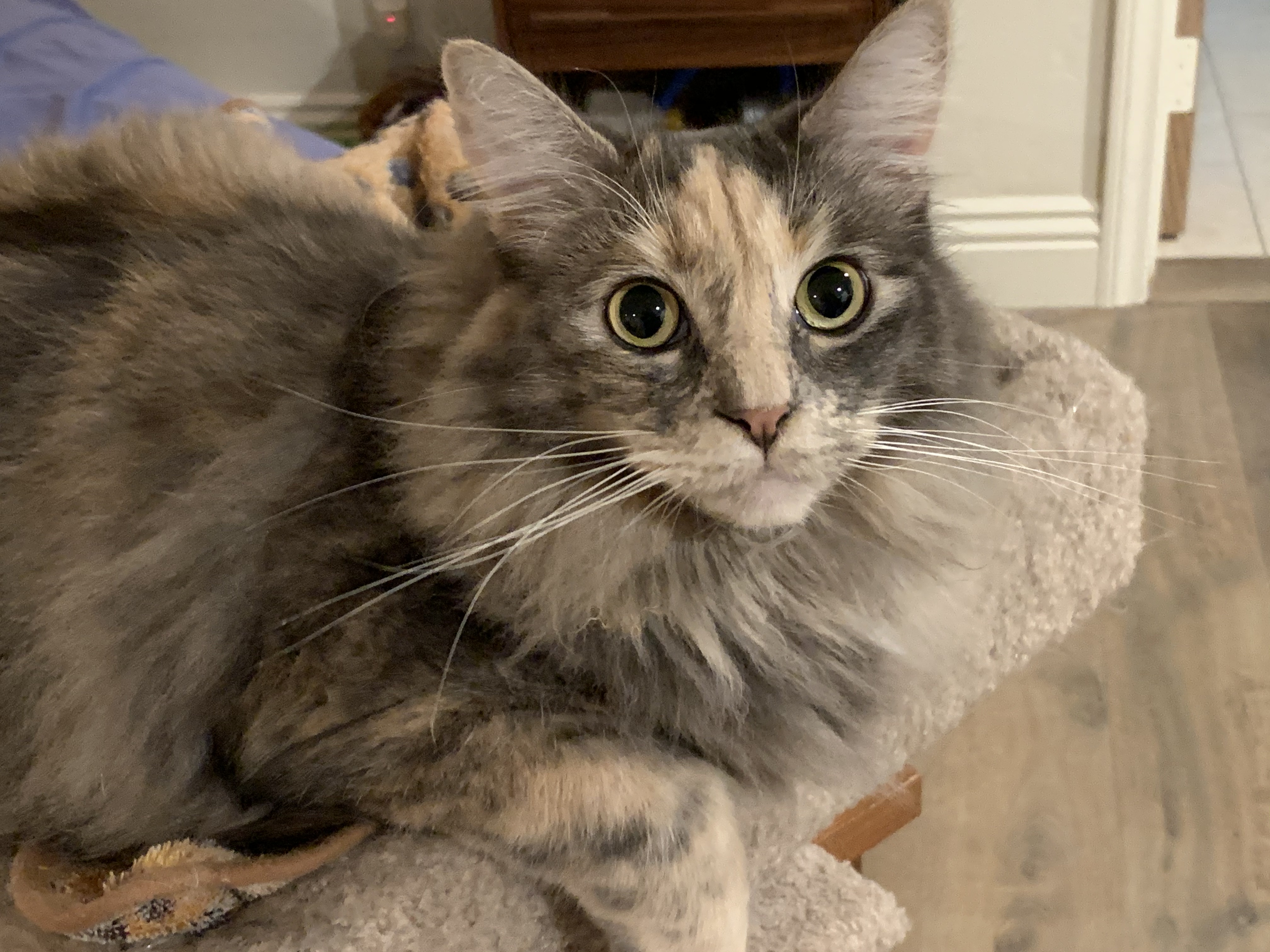 Or, maybe they are her attempt to communicate with me that she is a person — a cat of a person — or a person of a cat — who just happens to be inside a cat body. She cannot speak, or write. Her brain doesn’t allow her to do all the things I can do (or, vice versa, by the way). But to her, inside her heart, it’s much like me inside mine. And, if that’s true, then maybe we can learn to “communicate” using the dish towels.