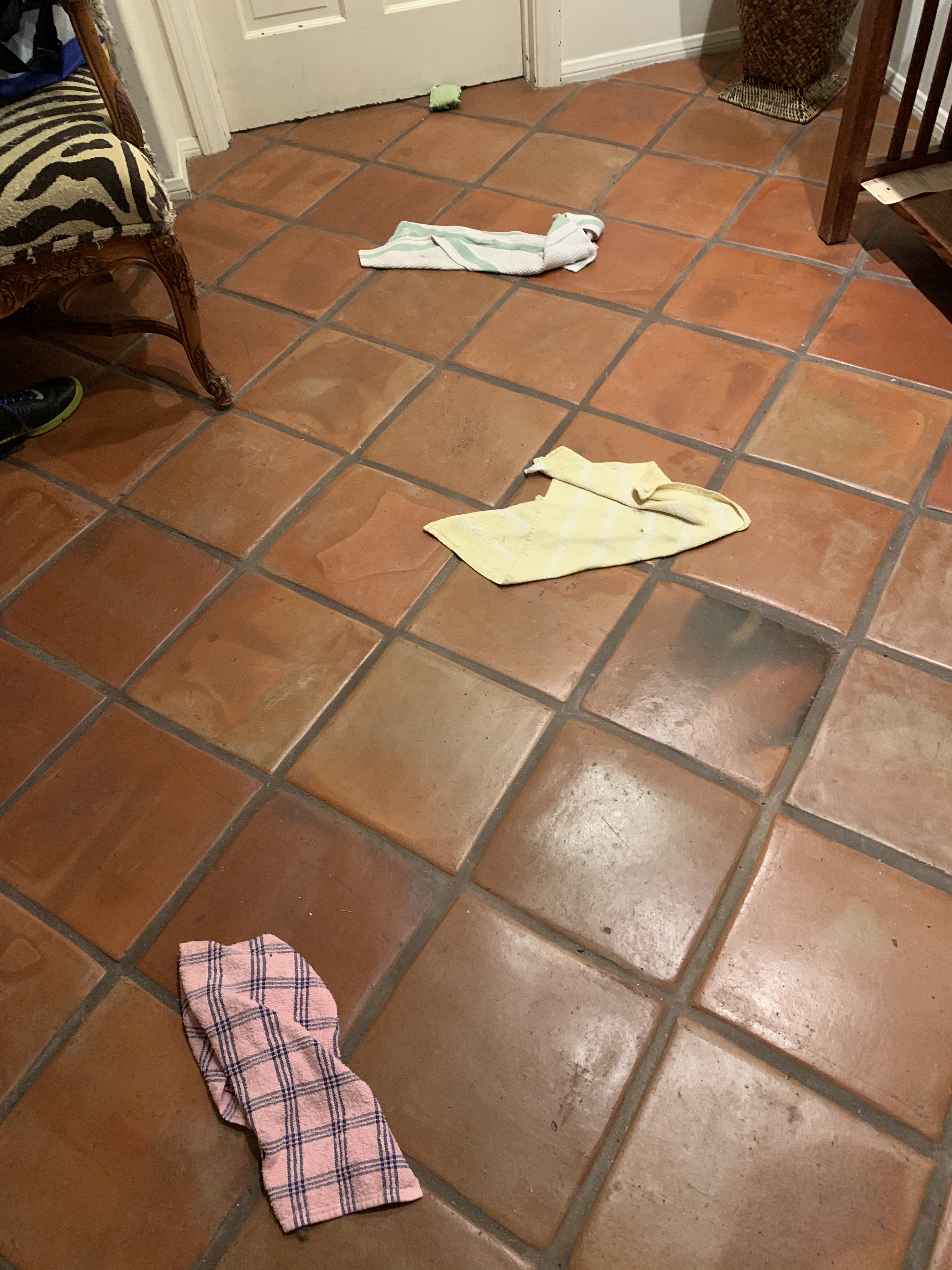 After several years of this, it slowly dawned on me that she was often pairing things. She would put two paired socks down next to each other, often in lines that were close to parallel. She would not — or at least I never observed such — to put a sock next to a dish towel, for instance, while there were many instances of two socks or two dish towels. Sadly, this cannot be completely explained because socks are always closer to each other than they are to dish towels in our house. At first, the number of dish towels was limited because I would always put one where Shadow couldn’t find it. Over time, however, as she discovered more and more ways to find the dish towels she couldn’t find, the number of dish towels in any one … “arrangement” … grew.